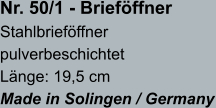 BRIEFÖFFNER Bauermann & Schwammekrug GmbH - Grundstr. 26a - D-42655 Solingen - Tel.: 0049 - (0) 212 - 81 41 31 zurück zurück B&S